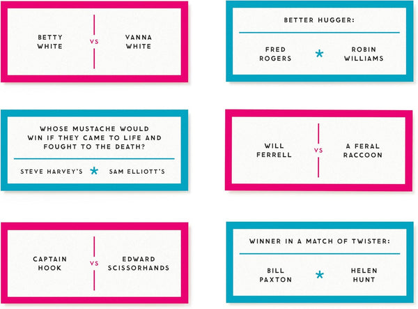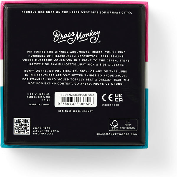 SOCIAL GAME – Win points for winning arguments. Inside, you’ll find hundreds of hilariously-hypothetical battles–like whose mustache would win in a fight to the death, Steve Harvey's or Sam Elliott's? Just pick a side and debate. Suitable for 2 to 4 (or more) players. Includes 200 cards with different battles to play out.