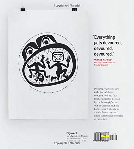 As a high-ranking member of Hamat'sa, the prestigious Kwakwaka'wakw secret society centred on the story of a ravenous, man-eating spirit, Dick drew on all these art forms to create regalia for and participate in elaborate ceremonies that enacted Kwakwaka'wakw cosmology. Devoured by Consumerism shares nearly two dozen of these masks: vivid, unforgettable creations, made with traditional and contemporary methods and materials, depicting figures like Cannibal Raven, Nu-Tla-Ma (Fool Dancer), and Bookwus (Wild Man of the Woods).